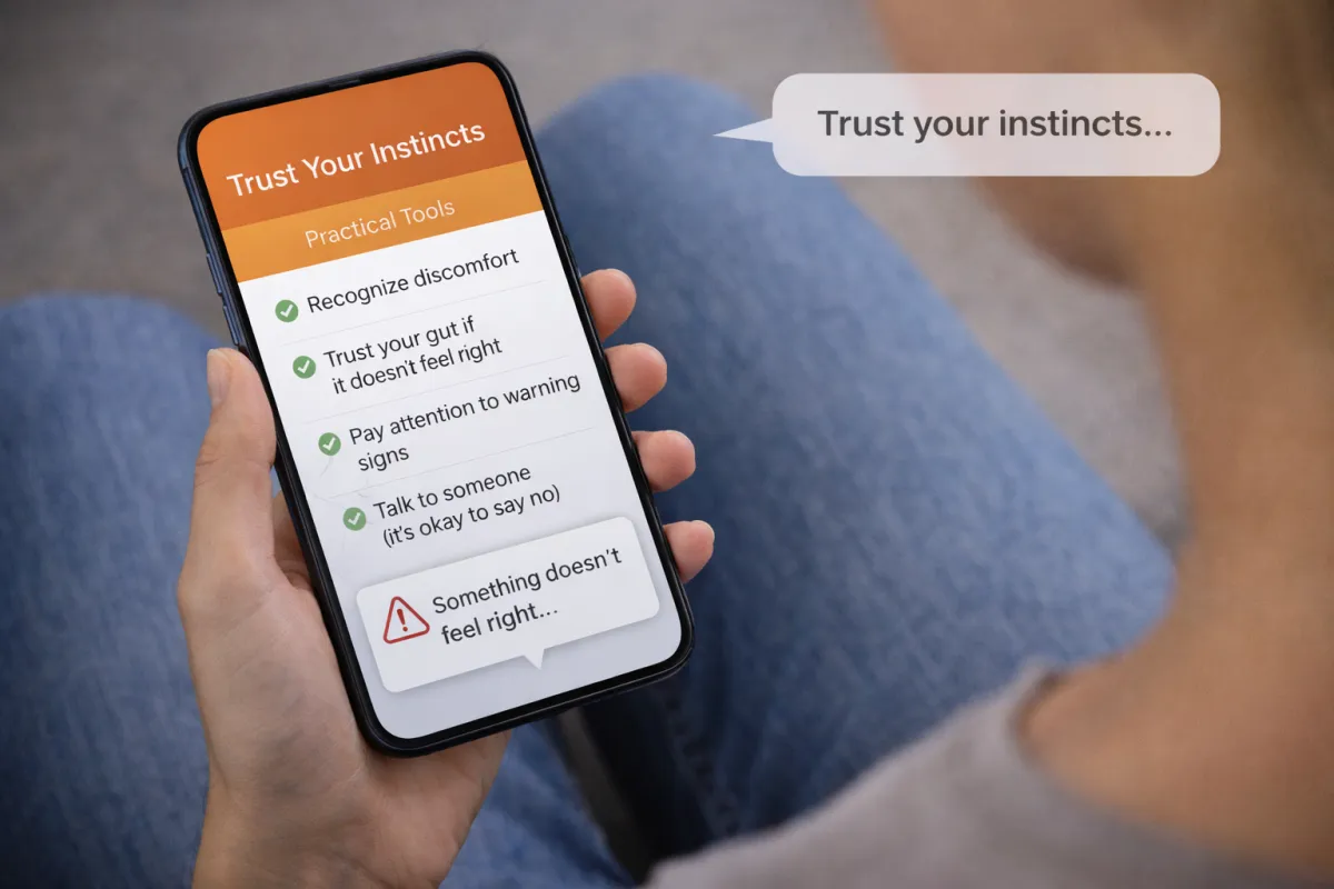 Practical tools for trusting instincts, recognising discomfort and understanding when something does not feel right.